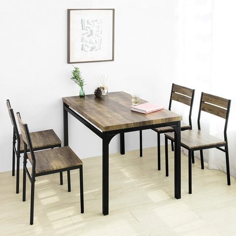 Table à manger de cuisine industrielle pour 4 avec quatre chaises en bois Dinette peu encombrante pour salle à manger Ensemble pour petit déjeuner Nook