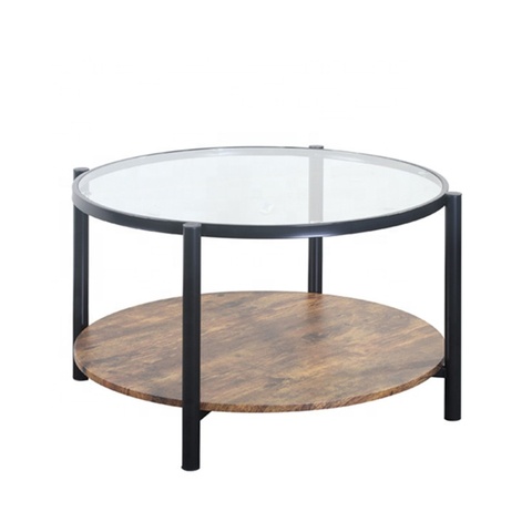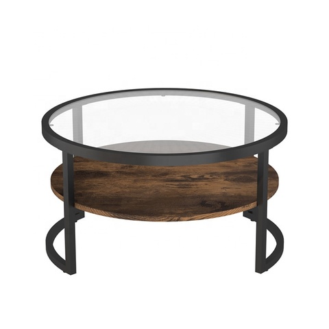 Phong cách công nghiệp rõ ràng Vòng Bàn cà phê thủy tinh trong khung kim loại màu đen