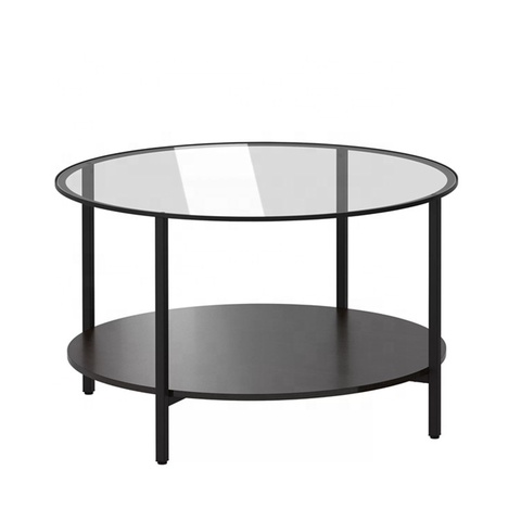 Kim loại màu đen khung Vòng Glass Top bàn trà với kệ lưu trữ