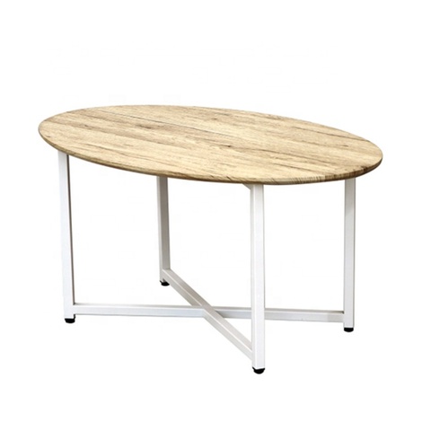 Bàn cà phê hình bầu dục nhỏ kiểu Nhật với chân kim loại màu trắng