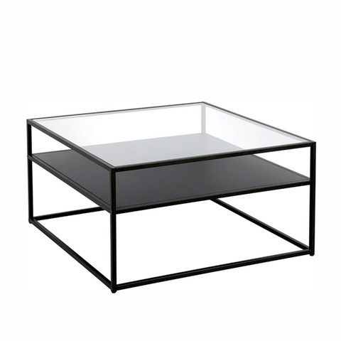 Hiện đại kính vuông đầu Bàn cà phê trong khung kim loại đen