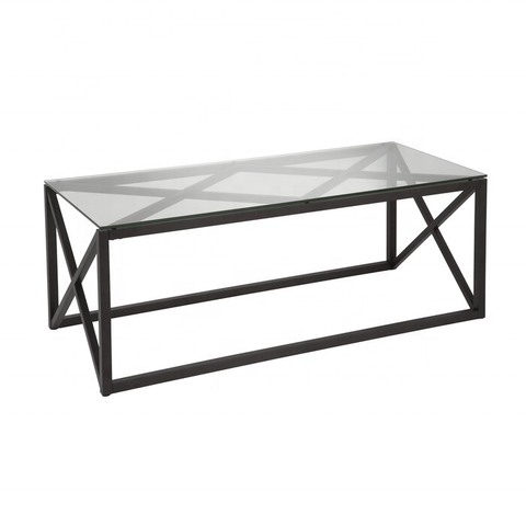 Hiện đại hình chữ nhật rõ ràng Glass Top Bàn cà phê với x Khung kim loại