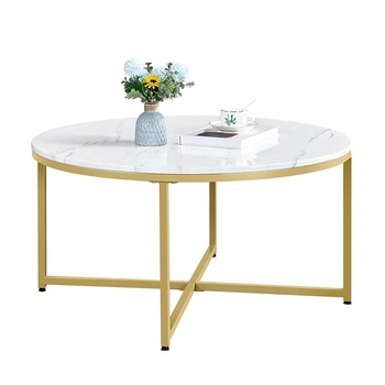Çapraz tasarım mermer masa ile 36 "sahte Metal taban yuvarlak sehpa